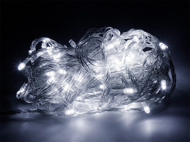 De 22 meter lange snoer bestaat uit 300 koud wit kleurige leds.