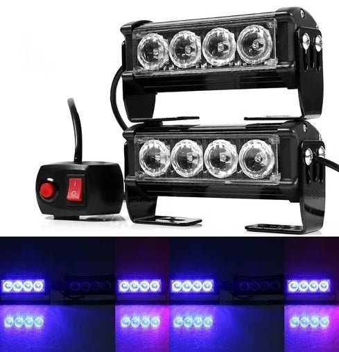 BLAUW bumper flitser 4 LED 12 Volt - Complete Set - Zwart
