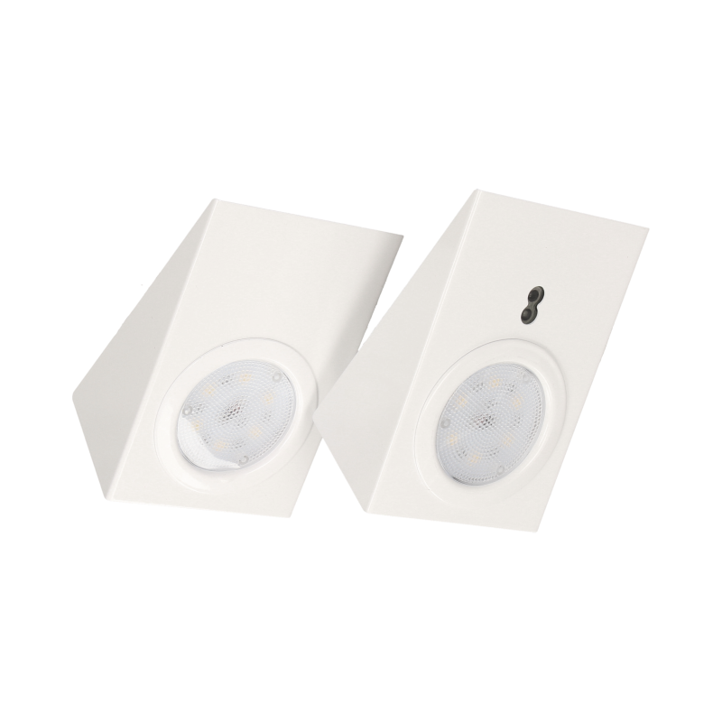 Deze onderkast lampen met hoekvorm kunnen perfect in de hoek van keukenkasten of werkbladen gemonteerd worden. Ze hebben een ingebouwde contactloze schakelaar, die ervoor dat de lampen aangaan als er een beweging van de hand wordt gedetecteerd. De lampen produceren een neutraal wit licht , met een lichtopbrengst van 180 Lumen. De lampen hebben een vermogen van 2,5 Watt. Deze set wordt geleverd per twee stuks.