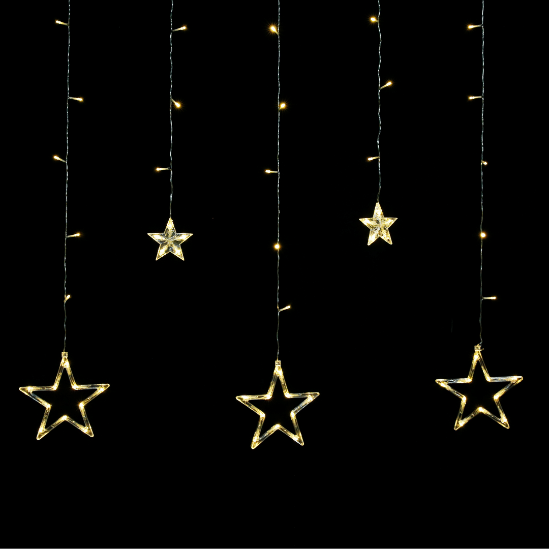 LED Sterrengordijn kerst - 12 sterren - warm wit - 138 leds - Koppelbaar