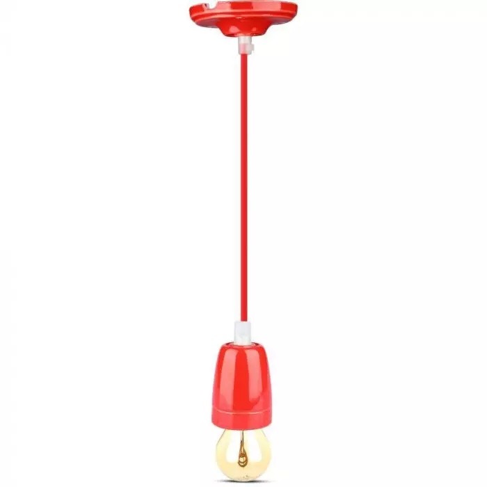 Retro porcelain lamp - RED - E27 fitting - pendant