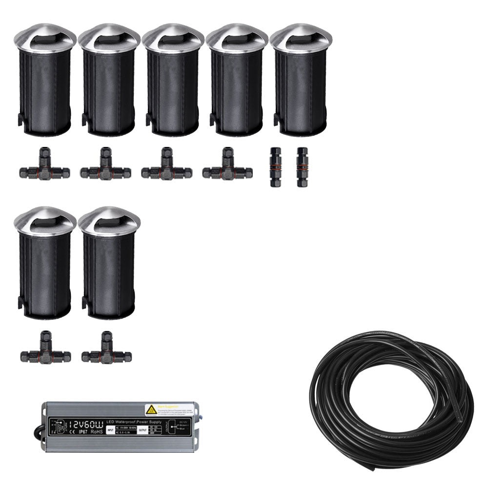 7 spots LED pour allée de jardin - 12 V - 2 côtés - 41 mm - kit complet