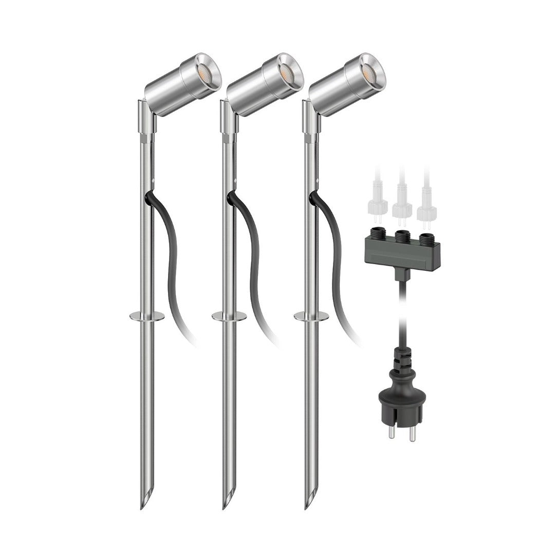 Met deze complete set met 3 grondspots met alle benodigdheden heeft u in één keer een gehele plug & play set in huis.