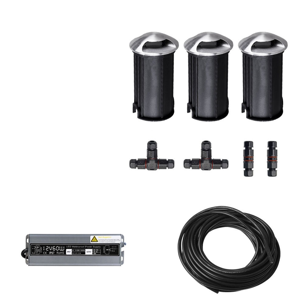 3x LED tuinpad spot - 12V - 3 watt - 51mm - complete set