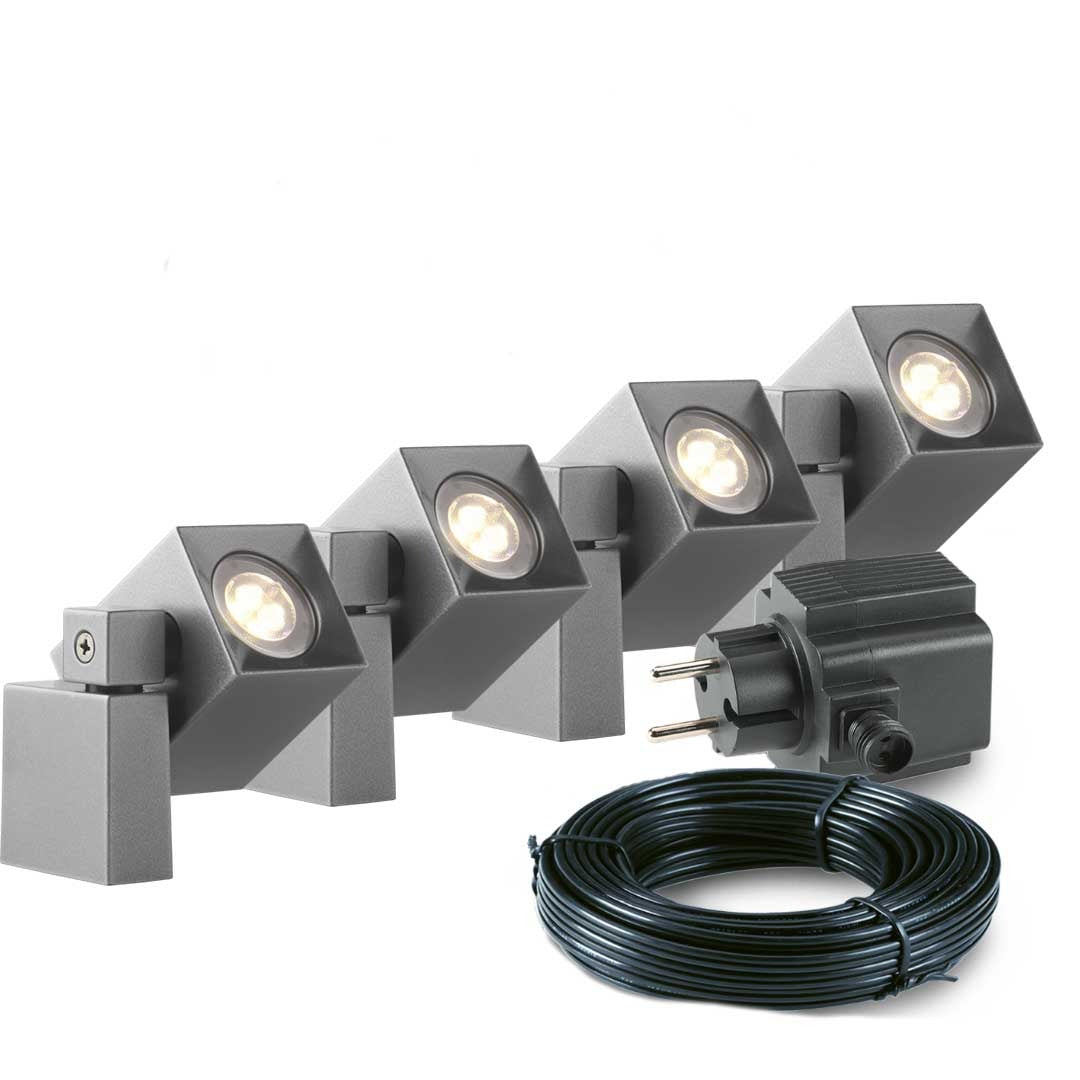 Een complete plug & play set met 4 Wandspots grijs 2 Watt