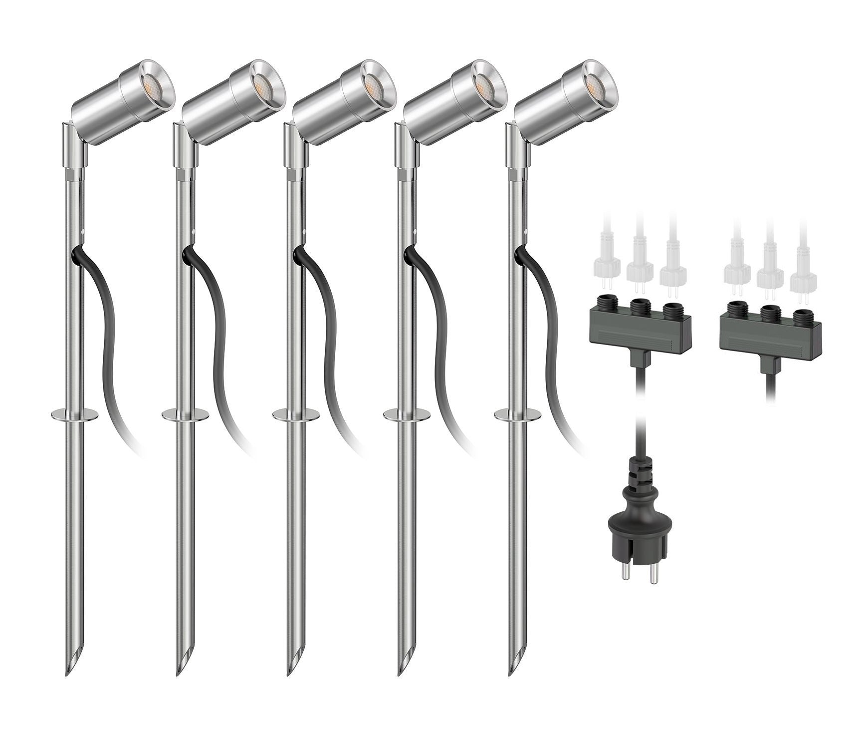 Een complete plug & play set met 5 grond spots