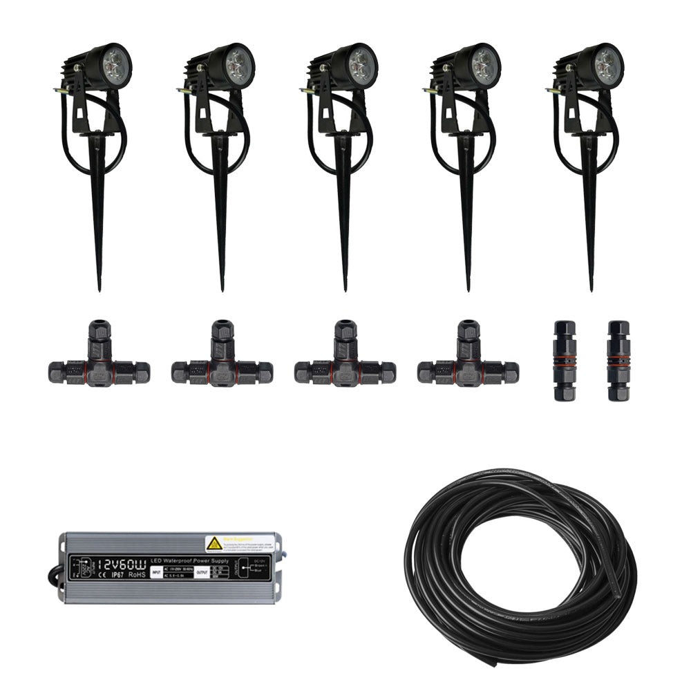 Een complete Plug&Play set met 5 grond spots