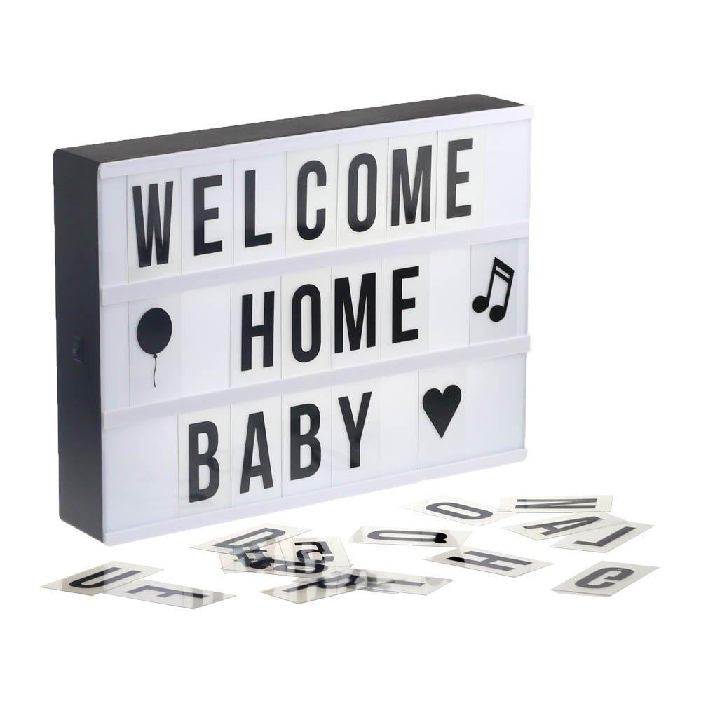 Hippe en strakke lichtbox met bijgeleverde letters, cijfers en symbolen. Laat uw creativiteit de vrije loop en maak uw lichtbox persoonlijk en uniek.