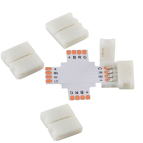 Handige Quatro splitter gemaakt van de PCB flexibele printplaat waar ook onze LED strips van gemaakt zijn. Handig om een kruising te solderen, of middels klik-klik connectors vier stukken strip in een kruis te monteren.