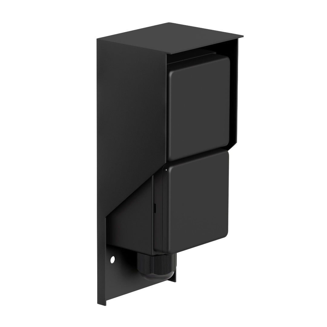 Met deze compacte wandcontactdoos sluit je eenvoudig stroom aan op de gewenste plek buitenshuis, zoals op het terras, aan de gevel of in de schuur. Ideaal voor het aansluiten van verlichting, elektrisch tuingereedschap of een barbecue. De contactdoos is voorzien van twee stopcontacten (230V) met zelfsluitende kleppen, zodat deze goed beschermd zijn tegen regen en vuil. De stevige behuizing van roestvrij staal is zwart gepoedercoat, onderhoudsvrij en ontworpen voor langdurig gebruik. Dankzij de IP44-classificatie is deze wandcontactdoos bestand tegen alle weersomstandigheden. De installatie is eenvoudig en alle bevestigingsmaterialen worden meegeleverd.