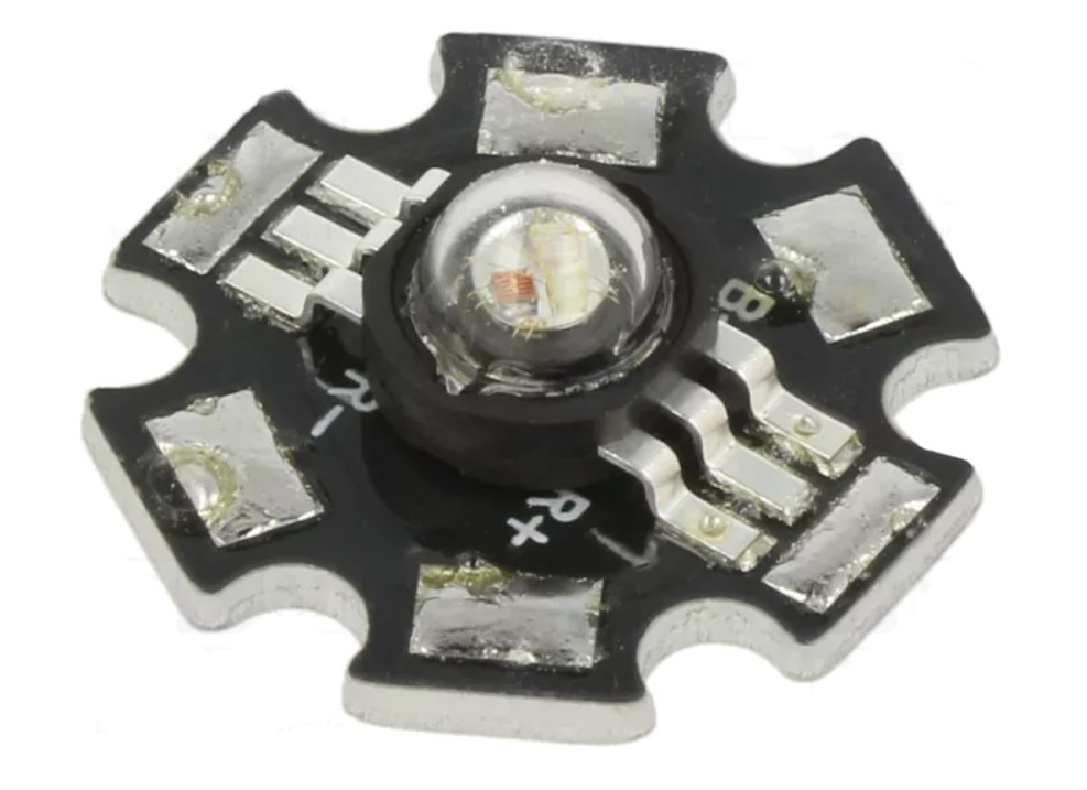 Deze RGB power LED diode van 3 watt is een compacte en krachtige lichtbron voor toepassingen waarbij kleurmenging en dynamische verlichting centraal staan. De LED combineert rood, groen en blauw licht in één behuizing en is uitgevoerd in een STAR-configuratie voor stabiele prestaties. Dankzij de brede stralingshoek van 130° en de lambertiaanse lichtverdeling zorgt deze diode voor een gelijkmatige lichtspreiding. Ideaal voor elektronische projecten, decoratieve verlichting en professionele lichttoepassingen.
